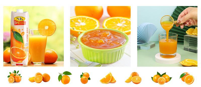 Dondurulmuş Konsantre Portakal Suyu:Bunlar, vakum ve ısı altında buharlaştırılmadan önce pastörize edilen ve filtrelenen ticari sıkma portakal sularıdır. Suyun çoğu çıkarıldıktan sonra konsantre edilir ve ardından yaklaşık 10 Fahrenheit derece olarak depolanır. Bu işlemle C vitamini, esanslar ve yağlar çıkarılır ve lezzet ve besleyiciliği geri kazandırmak için sonradan eklenir.